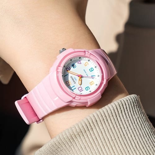 Zegarek damski Casio LX-800H-4AV to subtelna elegancja, która doskonale wpisuje się w nowoczesny styl. Jego minimalistyczny design przyciąga uwagę swoją prostotą, a jednocześnie nie pozbawia go klasycznej kobiecej wytworności. Zegarek wyróżnia się czytelną tarczą w delikatnym odcieniu różu, która zyskuje wyjątkowy charakter dzięki kontrastującym wskazówkom. Świeża, ale zarazem uniwersalna stylistyka sprawia, że model ten pasuje zarówno do codziennych, jak i bardziej sportowych stylizacji.