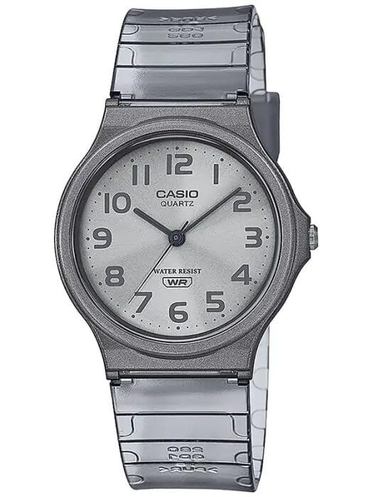 Zegarek damski CASIO MQ-24S-8BEF to prawdziwe ucieleśnienie prostoty i lekkości. Ten model zachwyca swoją minimalistyczną formą, która doskonale wpisuje się w codzienne stylizacje, dodając im odrobiny sportowego wdzięku. Jego okrągła, wytrzymała koperta z tworzywa sztucznego w szarym odcieniu prezentuje się niezwykle oryginalnie i kobieco, a jednocześnie pozostaje uniwersalna, pasując do różnych stylów – od casualowych po bardziej sportowe. Tarcza zegarka, utrzymana w srebrnej kolorystyce, została ozdobiona delikatnymi, białymi indeksami oraz smukłymi wskazówkami, które zapewniają doskonałą czytelność czasu. Brak zbędnych ozdób sprawia, że zegarek wygląda nie tylko stylowo, ale także niezwykle świeżo i nowocześnie.