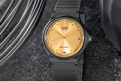 Zegarek Damski Casio MQ-76-9ALDF + BOX Odkryj połączenie klasycznej prostoty i nowoczesnego designu, które sprawia, że zegarek doskonale wpisuje się w elegancki, ale także codzienny styl. Jego smukła konstrukcja i kompaktowa tarcza sprawiają, że doskonale dopasowuje się do nadgarstka, a matowy, giętki pasek z żywicy zapewnia niezrównany komfort noszenia – miękki, elastyczny i odporny na codzienne wyzwania. Złote indeksy w postaci prostokątów i subtelnych punktów harmonijnie komponują się z ciepłym odcieniem złotych wskazówek, tworząc spójną i wyrafinowaną estetykę. Waga to zaledwie 20 gram!