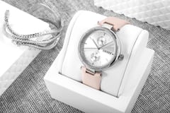 Zegarek DKNY Downtown Multi to więcej niż elegancki dodatek – to funkcjonalne akcesorium, które łączy nowoczesny design z praktycznymi funkcjami. Subtarcza na górze tarczy pozwala na szybki odczyt aktualnego dnia miesiąca, a wskaźnik 24-godzinny mieszczony na dole tarczy umożliwia lepszą orientację między porankiem a wieczorem. Koperta zegarka wykonana z polerowanej stali nierdzewnej przyciąga wzrok swoim eleganckim i subtelnie luksusowym wykończeniem, a tarcza w srebrnym odcieniu z lustrzanym efektem i logo DKNY uzupełnia ten dokonały duet. Skórzany pasek w kolorze pudrowego różu dodaje zegarkowi lekkości i ponadczasowej elegancji, czyniąc go uniwersalnym dodatkiem zarówno do casualowych, jak i bardziej formalnych stylizacji.