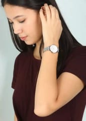 Damski zegarek Emporio Armani AR1682 z serii Gianni T-Bar to elegancki damski zegarek idealny na każdą okazję. Koperta oraz bransoleta zostały wykonane ze stali szlachetnej z powłoką PVD w kolorze srebrnym, co gwarantuje wieloletnią odporność na zniszczenie i odbarwienia. Model posiada dokładny mechanizm kwarcowy zasilany baterią. Białą tarczę z nietuzinkową fakturą macicy perłowej zabezpiecza odporne na zarysowania szkło mineralne.