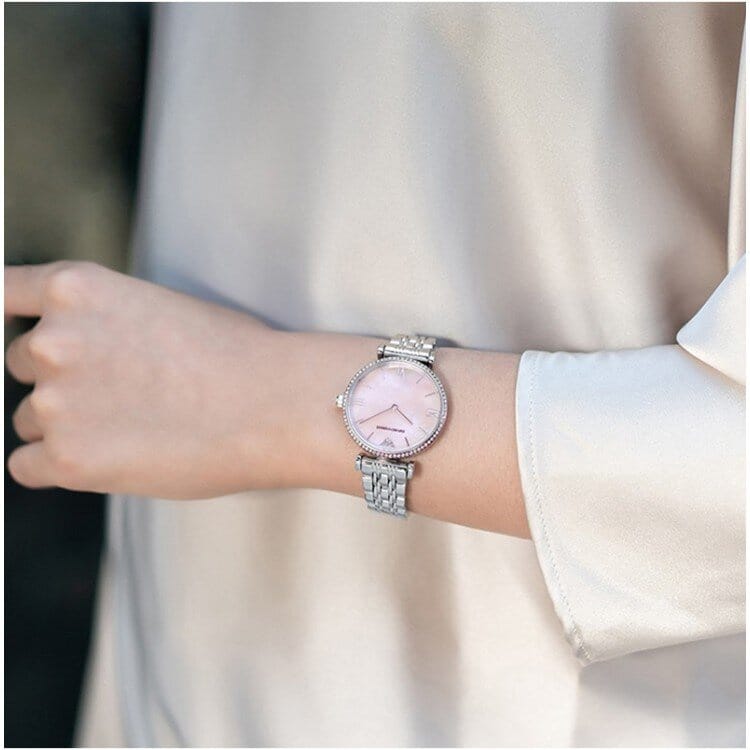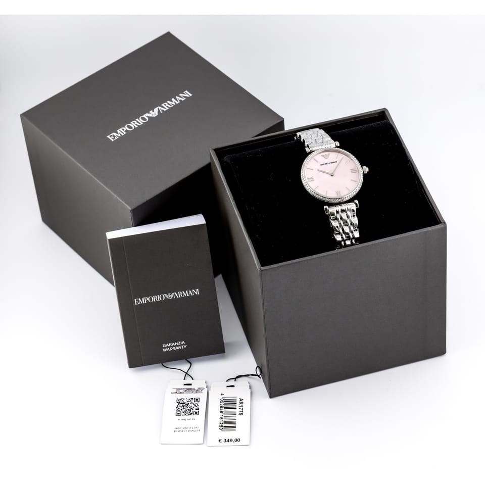 Damski zegarek Emporio Armani AR1779 to elegancki damski zegarek idealny na każdą okazję. Koperta oraz bransoleta zostały wykonane ze stali szlachetnej , co gwarantuje wieloletnią odporność na zniszczenie i odbarwienia. Model posiada dokładny mechanizm kwarcowy zasilany baterią. Różową tarczę z masy perłowej zabezpiecza odporne na zarysowania szkło mineralne. Klasa wodoszczelności czasomierza to WR30, co gwarantuje szczelność zegarka w przypadku drobnych zachlapań.
