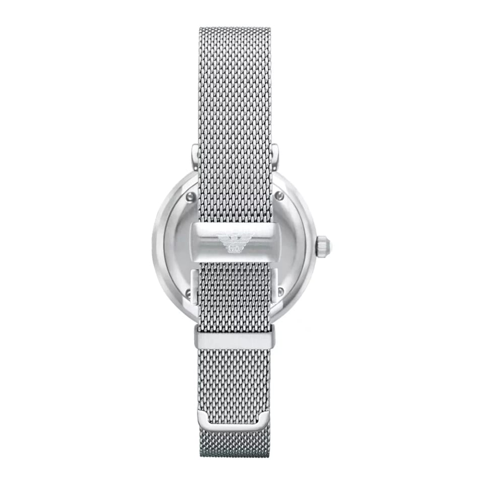 Zegarek Emporio Armani AR1955 z serii Classic to elegancki damski czasomierz, idealny zarówno do eleganckiego ubioru, jak i do noszenia na co dzień. Model posiada dokładny mechanizm kwarcowy zasilany baterią. Tarczę w kolorze srebrnym z kryształkami Swarovski zabezpiecza odporne na zarysowania szkło mineralne.