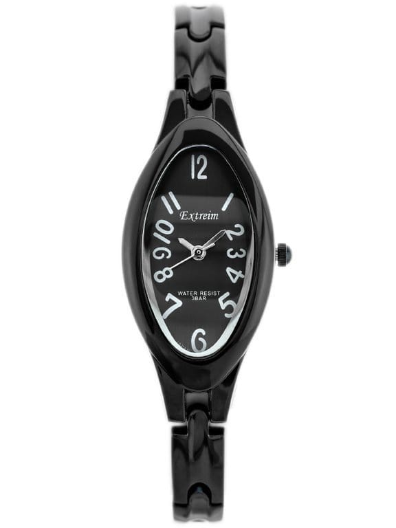 WYMIARY:koperta: 48 x 20 mmtarcza: 28 x 14 mmszerokość bransolety: 8 mmdługość całości: ok. 200 mm Kolorystyka:Koperta: czarnaTarcza: czarnaBransoleta: czarna