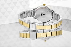 Ten zegarek to coś więcej niż czasomierz – to biżuteryjny akcent, który dodaje blasku każdej stylizacji. Dwukolorowa bransoleta w odcieniach srebra i złota sprawia, że harmonijnie komponuje się zarówno z klasyczną biżuterią, jak i nowoczesnymi dodatkami. Lśniąca tarcza o subtelnym promienistym efekcie przyciąga spojrzenia, a złote detale nadają mu szykownego, biżuteryjnego charakteru. To idealny wybór dla kobiet, które cenią elegancję w codziennym wydaniu – pasuje zarówno do biznesowej koszuli, zwiewnej sukienki, jak i wieczorowej kreacji. Delikatny, a zarazem wyrazisty – podkreśla kobiecy styl z nutą luksusu.