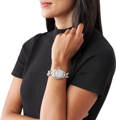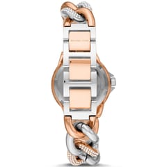 Zegarek damski Michael Kors Camille Mini MK6843 przeznaczony jest dla kobiet które cienią sobie wyróżniające się dodatki. Koperta zegarka wykonana została ze stali szlachetnej w kolorze srebrno różowo złotym zdobiona cyrkoniami. Tarcza w kolorze srebrnym chroniona mineralnym szkiełkiem, na której znajduje się chronograf odmierzający czas. Zegarek został wyposażony w precyzyjny mechanizm kwarcowy.