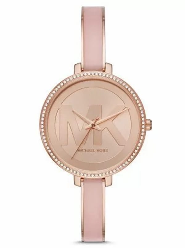 Zegarek Damski Michael Kors Jaryn MK4545 to stylowy, klasyczny i elegancki model dla każdej kobiety. Zegarek ten został wykonany w całości ze stali szlachetnej w kolorze różu i różowego złota, co gwarantuje wieloletnią odporność na zniszczenie. Za niezawodne działanie urządzenia odpowiada dokładny mechanizm kwarcowy zasilany baterią.