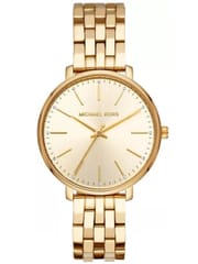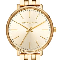 Zegarek Michael Kors MK3898 Pyper to szykowny, elegancki czasomierz oparty o klasyczny design. Złota koperta oraz bransoleta zostały wykonane ze stali szlachetnej co gwarantuje wieloletnią odporność na zniszczenie. Model posiada dokładny mechanizm kwarcowy zasilany baterią. Całość przykrywa odporne na zarysowania szkło mineralne.