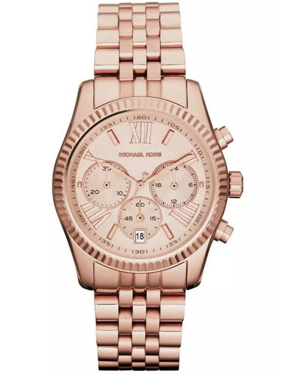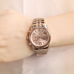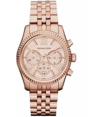 Model Michael Kors MK5569 z serii Lexington to zegarek na stalowej bransolecie w kolorze różowego złota. Oznaczenia godzinowe w postaci cyfr rzymskich oraz indeksów świetnie komponują się z tarczą i wskazówkami. Wyposażony jest w precyzyjny mechanizm kwarcowy, dzięki któremu zegarek dokładanie pokazuje aktualną godzinę. Dostępne funkcje to chronograf, datownik dnia miesiąca oraz 24-godzinne wskazanie czasu. Tarczę ochrania mineralne, odporne na zarysowania szkiełko.