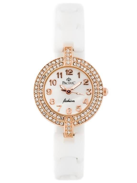 Kolorystyka: bransoleta w kolorze białym, tarcza w kolorze perłowym, koperta w kolorze rosegold, cyfry i wskazówki w kolorze rosegoldAntyalergiczna powłoka IPRInny kolor? szukaj: zy583