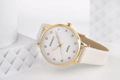 Damski zegarek Perfect wyróżnia się minimalistycznym designem, z klasycznym wskazaniem godzin i minut. To proste, a zarazem eleganckie rozwiązanie, które nadaje subtelny szyk każdej kobiecej dłoni, podkreślając jej delikatność i styl.