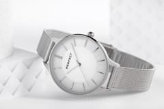 Srebrna bransoleta harmonijnie łączy się z resztą zegarka, tworząc elegancki, a zarazem minimalistyczny dodatek, który sprawdzi się zarówno na co dzień, jak i podczas wyjątkowych okazji. To zegarek dla kobiety, która ceni prostotę, ale zawsze z nutą luksusu.