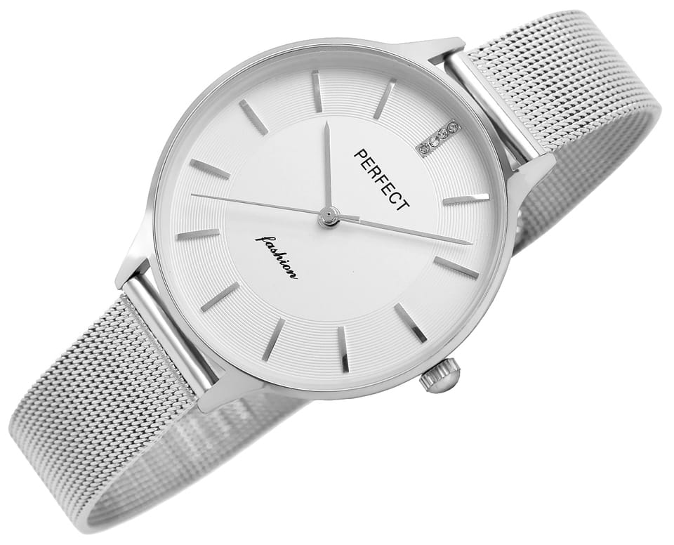 Wykonana z wysokiej jakości stali, idealnie dopasowuje się do damskiego nadgarstka, zapewniając wygodę noszenia przez cały dzień. Jej elegancka struktura i zapięcie ozdobione logiem marki Perfect dodają zegarkowi wyjątkowego stylu i wyróżniają go na tle innych.