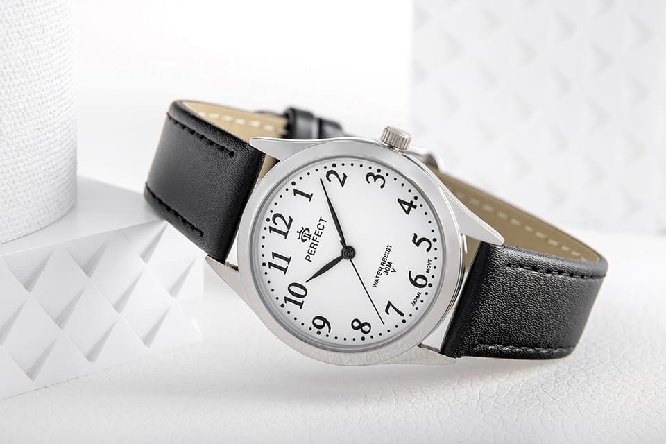 Damski zegarek Perfect wyróżnia się minimalistycznym designem, z klasycznym wskazaniem godzin i minut oraz sekund. To proste, a zarazem eleganckie rozwiązanie, które dodaje damskiej dłoni wyjątkowego szyku, ale także podkreśla jej charakter i klasę.