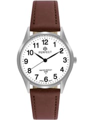 Marka: Perfect Mechanizm: Kwarcowy Tarcza: Analogowa Koperta: Wysokogatunkowa stal Szkiełko: Mineralne Pasek: Skóra naturalna Wodoszczelność: 3 ATM