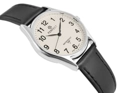 Skórzany pasek tego zegarka to kwintesencja klasy i wygody. Wykonany z najwyższej jakości materiału, komfortowo dopasowuje się do nadgarstka, oferując nie tylko trwałość, ale też elegancki wygląd. Jego miękkość zapewnia komfort noszenia na co dzień, a perfekcyjne wykończenie podkreśla charakterystyczny styl marki Perfect.