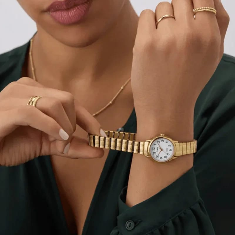 Elegancki damski zegarek TIMEX EASY READER TW2W52400 pasuje idealnie do codziennych stylizacji, jak i na bardziej uroczyste okazje. Tarcza jest w kolorze białym z czarnymi cyframi co ułatwia odczyt godziny chroniona mineralnym szkłem. Model ten posiada złotą kopertę oraz brnsoletę wykonaną z wysokiej jakości stali szlachetnej. Klasa wodoszczelności zegarka to WR30.