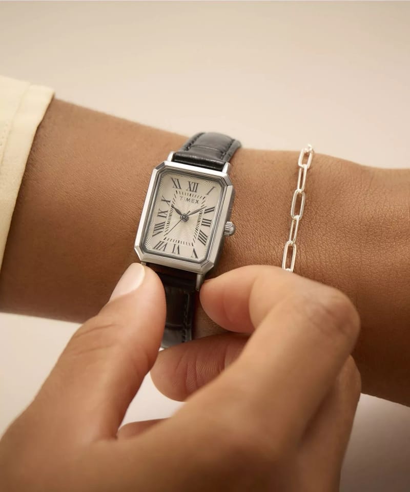 Elegancki damski zegarek TIMEX TW2Y00800 Dress pasuje idealnie do codziennych stylizacji, jak i na bardziej uroczyste okazje. Tarcza w kolorze białym z czytelnymi srebrnymi cyframi - całość chroni mineralne szkło odporne na zarysowania. Model ten posiada czarny skórzany pasek oraz srebrną kopertę wykonaną z wysokiej jakości stali szlachetnej. Klasa wodoszczelności zegarka to WR30.