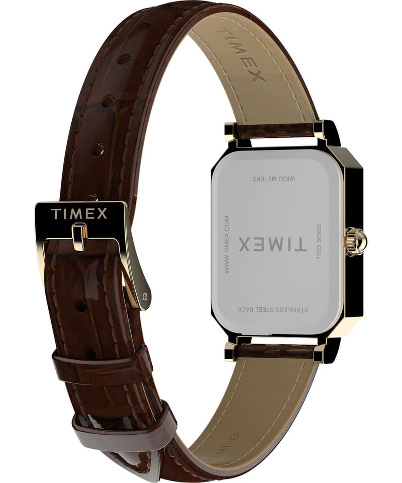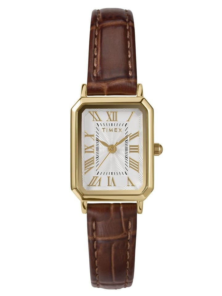 Elegancki damski zegarek TIMEX TW2Y00900 Dress pasuje idealnie do codziennych stylizacji, jak i na bardziej uroczyste okazje. Tarcza w kolorze białym z czytelnymi złotymi cyframi - całość chroni mineralne szkło odporne na zarysowania. Model ten posiada brązowy skórzany pasek oraz złotą kopertę wykonaną z wysokiej jakości stali szlachetnej. Klasa wodoszczelności zegarka to WR30.