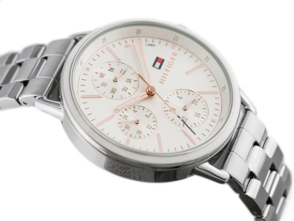 Zegarek Tommy Hilfiger Carly 1781787 to połączenie elegancji i nowoczesnego stylu. Jego subtelna koperta w kolorze srebrnym i minimalistyczna tarcza tworzą wyjątkowo kobiecy design, który pasuje do każdej stylizacji. Kwarcowa precyzja, stalowa bransoleta i charakterystyczne logo Tommy Hilfiger sprawiają, że to idealny wybór dla kobiet ceniących klasę i ponadczasowy szyk.
