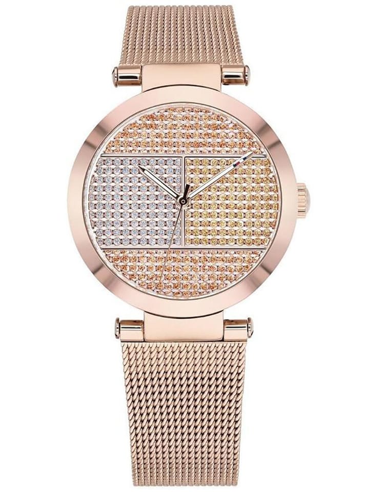 Zegarek Tommy Hilfiger 1781868 LYNN to wyjątkowa propozycja od kultowej już marki, będąca odzwierciedleniem najgorętszych trendów. Ten elegancki damski czasomierz zasilany niezawodnym kwarcowym mechanizmem. Koperta oraz bransoleta zostały wykonana ze stali szlachetnej, co gwarantuje jej wieloletnią odporność na zniszczenie. Całość jest utrzymana w kolorze różowego złota z dodatkiem cyrkonii na tarczy, które tworzą logo marki. Wodoszczelność rzędu 3 ATM.