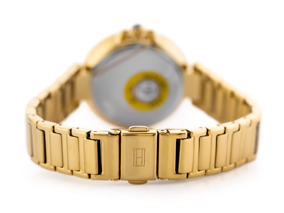 Damski zegarek Tommy Hilfiger 1782124 to elegancki czasomierz chroniony odpornym na zarysowania szkiełkiem mineralnym. Bransoleta oraz koperta są wykonana z wysokiej jakości stali nierdzewnej w kolorze złotym.