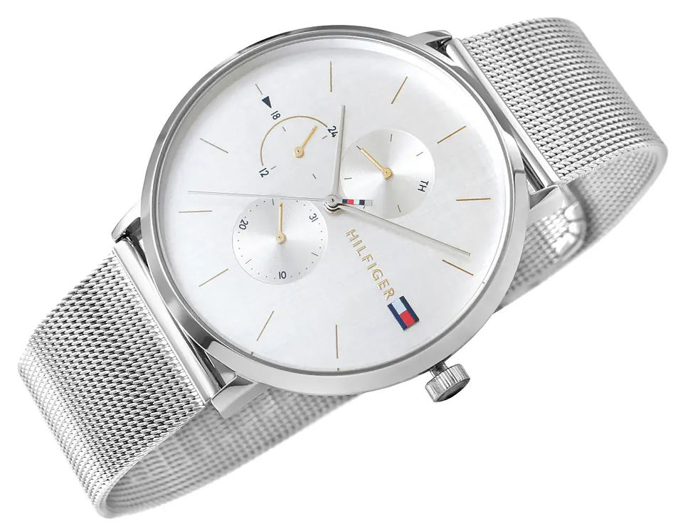 Zegarek damski Tommy Hilfiger Jenna 1781942 wyposażony jest w działające chronografy: czas dobowy 12/24h oraz datownikiem dni miesiąca i tygodnia.