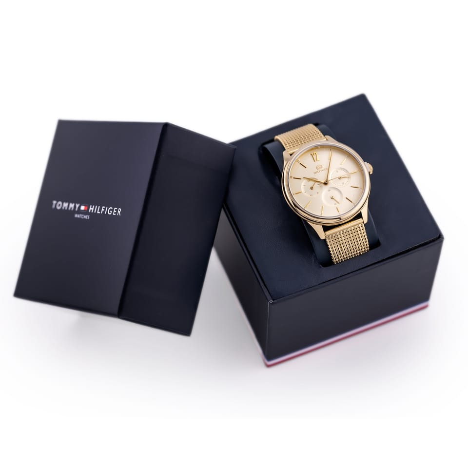 Z zegarkiem otrzymasz stylowe, firmowe pudełko w kolorystyce marki Tommy Hilfiger. To eleganckie opakowanie stanowi idealne uzupełnienie, które sprawia, że zegarek staje się gotowym, luksusowym prezentem. To subtelny akcent, który podkreśla wyjątkowy charakter i klasę marki Tommy Hilfiger.