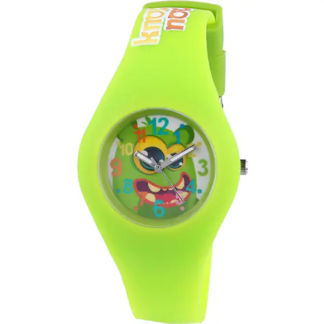 Zegarek dzieciecy Knock Nocky Fluffy Goldi to model idealny zarówno dla dziewczynki, jak i dla chlopca. Stanowi on polączenie koperty z kompozytu plynnie lączącej sie z paskiem tworzywa sztucznego - calośc ma kolor zielony. Kolorowy cyferblat ze wskazówkami świecącymi w ciemności, ozdobiony grafiką przedstawiającą bajkowego stwora, zostal przykryty szkielkiem mineralnym.