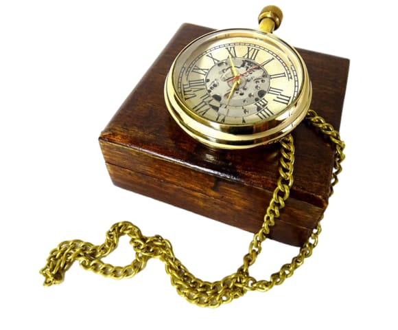 Zegarek mechaniczny retro WDM229/2 w pudełku drewnianym Informacje o Produkcie: Nazwa: Zegarek Mechaniczny Retro na Łańcuszku w Drewnianym Pudełku (WDM229/2) Wymiary zegarka: 5 cm (średnica) x 5 cm (długość z koronką) x 1,5 cm (grubość) Wymiary pudełka: 8 cm x 8 cm x 2,5 cm Materiał: Zegarek: mosiądz; Pudełko: drewno Mechanizm: Nakręcany (mechaniczny) Cechy szczególne: Widoczny mechanizm wewnętrzny, w komplecie łańcuszek, elegancka wypraska wewnątrz pudełka. Dlaczego warto? •Widoczny Mechanizm Wewnętrzny: Fascynująca cecha, która pozwala obserwować złożoną pracę trybów i sprężyn, dodając zegarkowi unikalnego charakteru i wartości edukacyjnej. •Wysoka Jakość Materiałów: Solidne wykonanie z mosiądzu gwarantuje trwałość i estetykę na lata. Łańcuszek dołączony do zegarka zapewnia wygodę noszenia lub zawieszenia. •Eleganckie Opakowanie Prezentowe: Zegarek znajduje się w pięknym drewnianym pudełku z miękką wypraską, co sprawia, że jest gotowy do wręczenia jako wyjątkowy prezent i zapewnia bezpieczne przechowywanie. •Doskonały Pomysł na Prezent