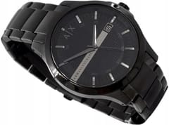 Zegarek męski Armani Exchange AX2104 to elegancki i nowoczesny model, który doskonale dopełni męską garderobę. Klasyczna czarna kolorystyka sprawia, że zegarek pasuje zarówno do codziennych, jak i bardziej formalnych stylizacji. Koperta o szerokości 46 mm, wykonana z wysokiej jakości stali szlachetnej, jest połączona z czarną stalową bransoletą, co zapewnia trwałość oraz wygodę noszenia. Czarna tarcza z efektem sunray posiada subtelne srebrne indeksy, co dodaje zegarkowi eleganckiego akcentu. Zegarek działa na precyzyjnym mechanizmie kwarcowym, a mineralne szkiełko chroni tarczę przed zarysowaniami. Wodoszczelność do 50 metrów sprawia, że jest odporny na zachlapania i codzienny kontakt z wodą.