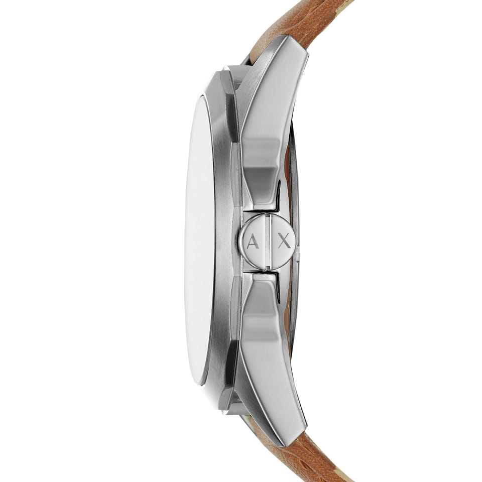 Zegarek Armani Exchange AX2635 jest wodoodporny do 100 metrów, co czyni go odpornym na zachlapania oraz umożliwia pływanie i nurkowanie na niewielką głębokość. Szeroki pasek ze skóry naturalnej w brązowym kolorze dobrze komponuje się z całością, podkreślając nowoczesny charakter zegarka.