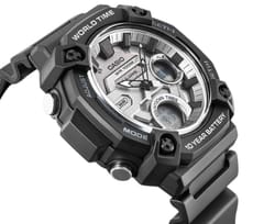 Połącz funkcjonalność z gotowością na każdą przygodę dzięki zegarkowi CASIO AEQ-120W o wyrazistej, solidnej formie i powiększonej kopercie. Duży bezel i wypukła tarcza zapewniają świetną czytelność i podkreślają męski, zdecydowany charakter zegarka. Wodoszczelność do 100 metrów oraz bateria działająca nawet 10 lat to gwarancja niezawodności. Dodatkowe funkcje, takie jak alarmx3, timer i czas światowy, sprawiają, że masz kontrolę nad swoim dniem – bez względu na to, gdzie jesteś. TELEMEMO (30 wpisów) to praktyczne rozwiązanie, które pozwala na przechowywanie ważnych kontaktów bez potrzeby korzystania z telefonu, co jest szczególnie przydatne w sytuacjach awaryjnych lub podczas aktywności na świeżym powietrzu. Dodatkowo, funkcja ta oferuje ekran informujący o dostępnej pamięci oraz automatyczne sortowanie zapisanych danych.