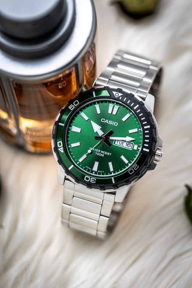 Zegarek Casio Collection MTD-125D-2A1 to doskonały wybór dla mężczyzn, którzy szukają niezawodnego czasomierza o eleganckim, ale zarazem sportowym charakterze. Jego stalowa koperta o nowoczesnym wyglądzie, w połączeniu z zieloną tarczą, nadaje całości dynamicznego, a jednocześnie wyważonego stylu. Zegarek nie tylko przyciąga wzrok, ale także zapewnia wyjątkową funkcjonalność, którą doceni każdy aktywny mężczyzna.
