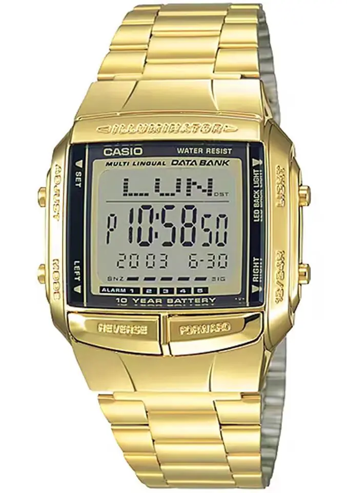 - Tarcza: Kwarcowa. TELEMEMO: pojemność pamięci: do 30 zestawów danych, z 8-znakowymi nazwami i 15-cyfrowym numerem telefonu; DUAL TIME: możliwość ustawienia dodatkowego czasu w innej strefie czasowej; MULTI LANGUAGE: wyświetlanie dnia tygodnia w różnych językach w tym j. polskim; stoper: z dokładnością do 1/100 s mierzący do 24 godzin; timer: Odmierza czas wstecz od 24 godzin do 1 minuty z dokładnością do 1 sekundy; alarm: pięć niezależnych alarmów ustawianych na dowolną godzinę i datę; sygnał pełnej godziny; kalendarz automatyczny: sam automatycznie dostosowuje datę w przypadku krótszych lub dłuższych miesięcy; tryb wyświetlania godziny: tryb wyświetlania godziny w formacie 12 lub 24-godzinnym;