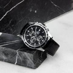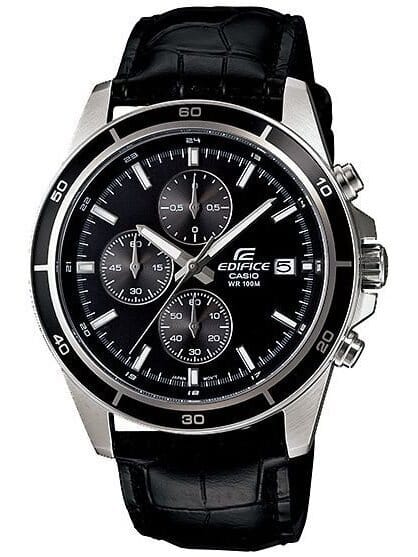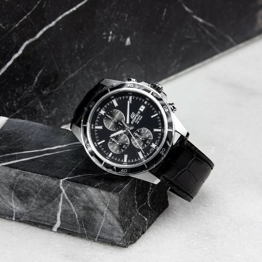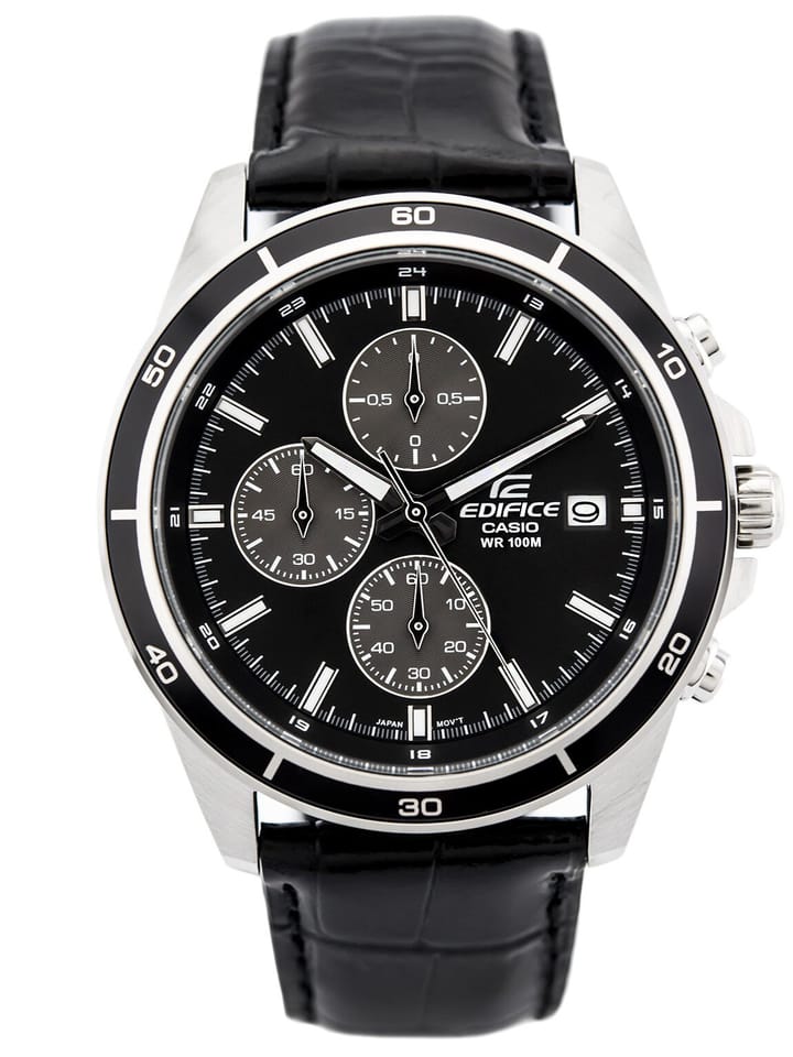 Zegarek Casio Edifice EFR-526L-1AVUEF to dynamiczny czasomierz o sportowym charakterze, wyposażony w precyzyjny chronograf. Dzięki wodoszczelności do 100m, zegarek gwarantuje niezawodną ochronę przed wilgocią, choć ze względu na skórzany pasek zaleca się unikać kontaktu z wodą. Wskazówki czasomierza są dodatkowo podkreślone fosforyzującą farbą Neobrite, co ułatwia odczyt godziny nawet w zacienionych miejscach. Zegarek ten posiada także datownik umieszczony na godzinie 3, dodając funkcjonalności i stylu do codziennego użytku.