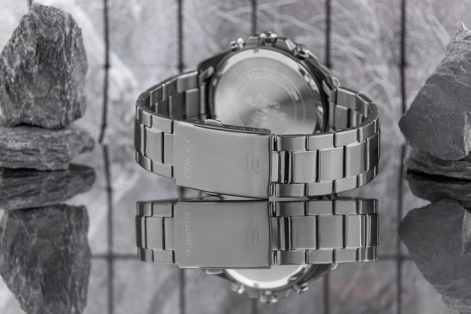 Komfortowa, stalowa bransoleta to znakomite uzupełnienie tego zegarka. Rodzaj bransolety jest gwarancją solidności i wygody podczas codziennego użytkowania. Komfort dopełnia odpowiednia jakość stali, która komfortowo dopasowuje się do męskiego nadgarstka. Zapięcie sygnowane jest logiem marki Edifice, co podnosi prestiż zegarka i zapewnia wyjątkowość na tle innych marek zegarków.