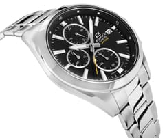 Znajdź idealną harmonię stylu i precyzji z klasycznym, średniej wielkości chronografem EDIFICE. Wyrafinowane połączenie dopracowanych detali i nowoczesnego designu wyróżnia się cienkim bezelem, który kontrastuje z szeroką tarczą, nadając zegarkowi wyrazisty, elegancki charakter. Wyposażony w funkcję daty dni miesiąca oraz chronografy: wskaźnik 24-godzinny, minuty stopera, sekundy stopera. Dzięki wodoszczelności 10 BAR możesz śmiało zabrać go na basen, trening czy wodną przygodę. Fluorescencyjne podświetlenie sprawia, że nawet po zmroku masz pełną kontrolę nad czasem.