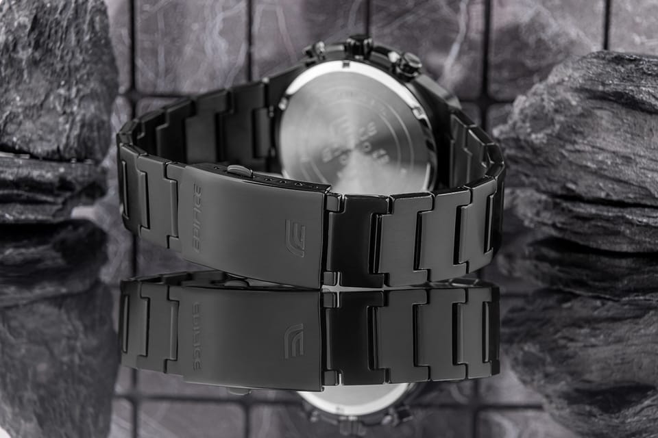 Komfortowa, stalowa bransoleta to znakomite uzupełnienie tego zegarka. Rodzaj bransolety jest gwarancją solidności i wygody podczas codziennego użytkowania. Komfort dopełnia odpowiednia jakość stali, która komfortowo dopasowuje się do męskiego nadgarstka. Zapięcie sygnowane jest logiem marki Edifice, co podnosi prestiż zegarka i zapewnia wyjątkowość na tle innych marek zegarków.