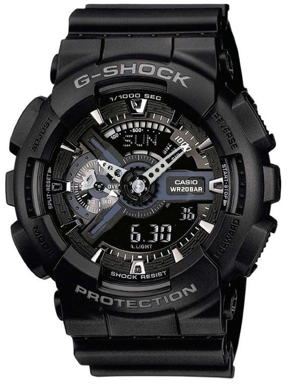 Funkcjonalność zegarka nie kończy się na jego wytrzymałości. Casio GA-110-1BER oferuje szeroką gamę przydatnych opcji – od stoperów, przez alarmy, po możliwość ustawienia drugiego czasu. Jego podświetlenie LED umożliwia komfortowe odczytanie godziny nawet w ciemnościach, a duży cyfrowo-analogowy wyświetlacz pozwala na łatwe śledzenie informacji. Zegarek jest także wodoodporny na poziomie 200 metrów, co czyni go doskonałym wyborem do aktywności nad wodą – zarówno pływania, jak i nurkowania.