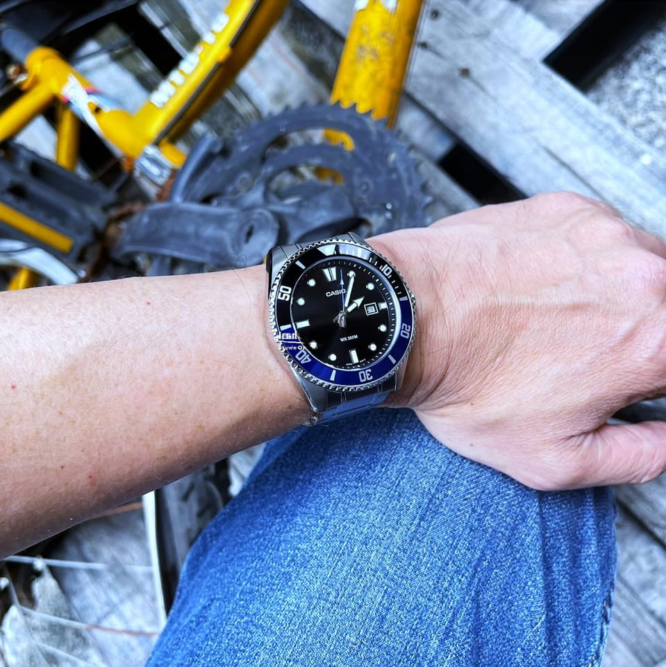 Zegarek Męski MDV-107D-1A2 to stylowy model typu diver z serii sportowej marki Casio, idealny dla osób szukających połączenia funkcjonalności i estetyki. Koperta oraz bransoleta zostały wykonane z wytrzymałej stali nierdzewnej 316L, która jest odporna na działanie wody, potu oraz innych zewnętrznych czynników. Czarna tarcza, zabezpieczona mineralnym szkłem, jest odporna na zarysowania, zapewniając długotrwałą czytelność. Z wodoszczelnością do 200 metrów (20 ATM) zegarek jest doskonałym wyborem zarówno do pływania, jak i nurkowania. Wbudowany datownik ułatwia śledzenie daty.