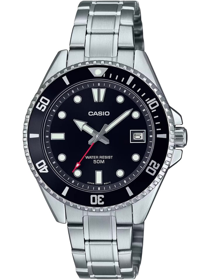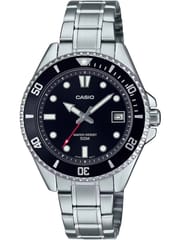 Elegancki zegarek męski Casio MDV-10D-1A1 łączy klasyczny styl z funkcjonalnością w praktycznej formie. W stalowej kopercie i bransoletce znajdziesz czarną tarczę z datownikiem, obrotowym bezelem oraz mineralnym szkłem — wszystko to składa się na wyrazisty, a jednocześnie uniwersalny czasomierz. Mechanizm kwarcowy gwarantuje precyzję, a wodoszczelność na poziomie około 50 m (5 ATM) daje pewność w codziennym użytkowaniu.