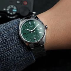 Zielona tarcza zegarka dodaje mu subtelności i oryginalności, co sprawia, że staje się on niepowtarzalnym dodatkiem do każdej stylizacji. Datownik dni miesiąca umieszczony na cyferblacie oraz powłoka Neobrite na wskazówkach i indeksach czynią ten model nie tylko estetycznym, ale także funkcjonalnym.