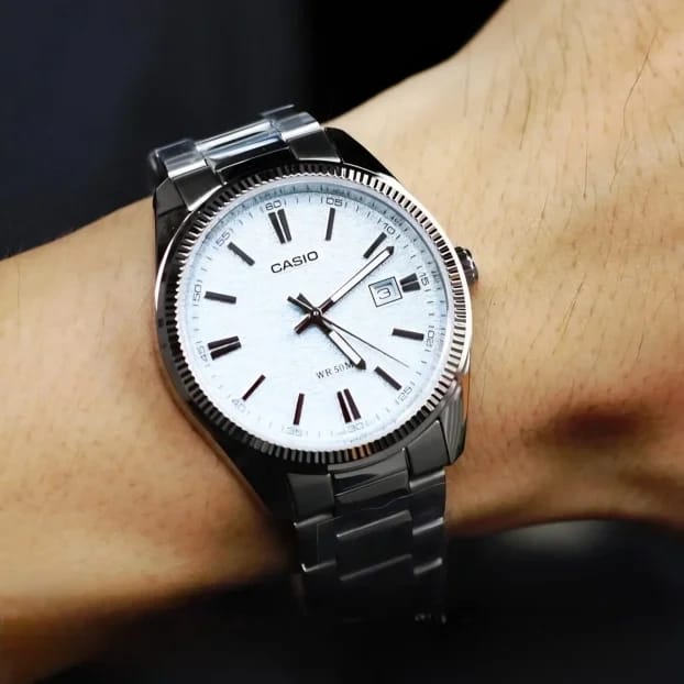 Zegarek Casio MTP-1302DA-7A to wyjątkowy akcent dla mężczyzny ceniącego styl i funkcjonalność. Jego srebrna koperta emanuje klasą, podkreślając jednocześnie solidność wykonania. Zegarek jest nie tylko elegancki, ale również praktyczny dzięki srebrnej bransolecie ze stali szlachetnej, która nadaje mu ponadczasowy charakter i solidność.