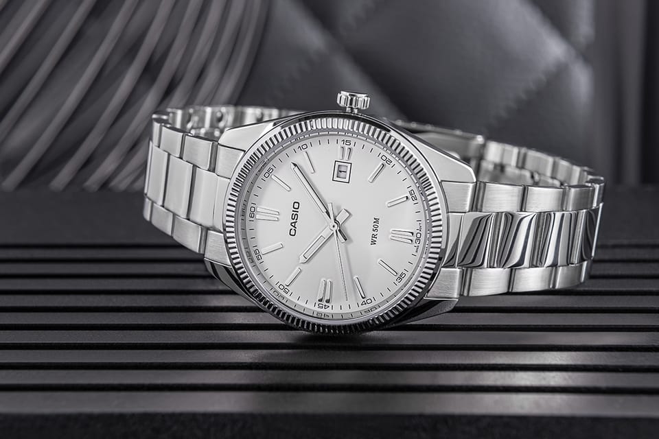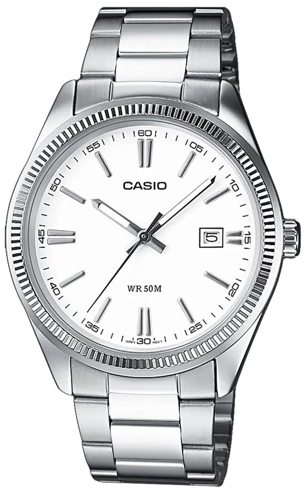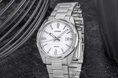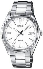 Zegarek Męski Casio MTP-1302PD-7A1VEF to klasyczny czasomierz, który łączy elegancję z prostotą. Jasna tarcza z wyraźnymi indeksami i datownikiem przy godzinie 3 jest bardzo czytelna i stylowa, a stalowa koperta i bransoleta nadają mu solidny, ponadczasowy charakter.