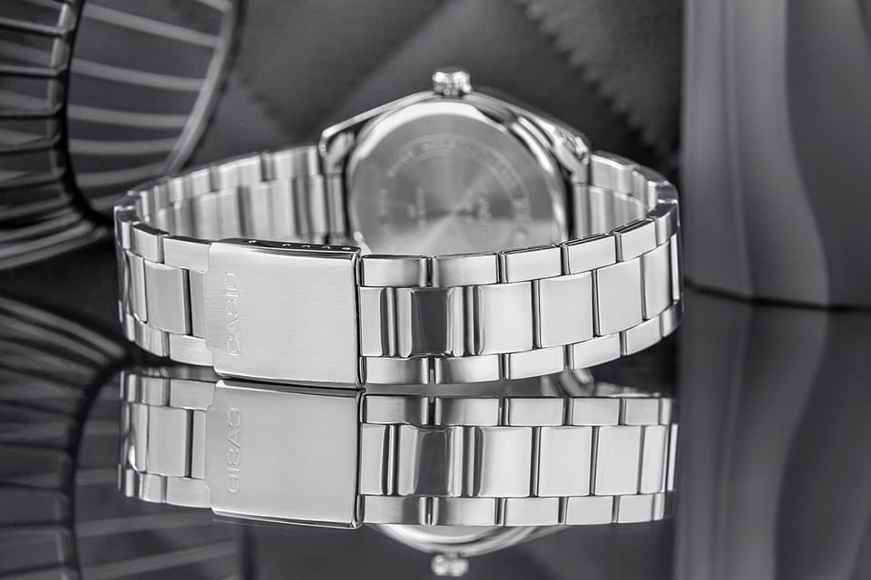 Model należy do kolekcji Casio Classic, która charakteryzuje się eleganckimi, prostymi wzorami stawiającymi na ponadczasowy styl. Jego jasna tarcza przyciąga wzrok swoją subtelną srebrzystością, a delikatne, ciemno obramowane indeksy godzinowe tworzą harmonijną całość, podkreślając czytelność tego modelu. Delikatny połysk srebrnych wskazówek, które dodatkowo wypełniono fluorescencyjną powłoką, zapewnia doskonałą czytelność także w warunkach słabego oświetlenia. Całość dopełnia solidna, srebrna bransoleta wykonana ze stali nierdzewnej, która dodaje zegarkowi elegancji i sprawia, że jest on wygodny w noszeniu. Ten harmonijny dobór kolorów i detali sprawia, że model MTP-1302PD-7A1VEF stanowi idealne połączenie klasyki i współczesnego stylu.
