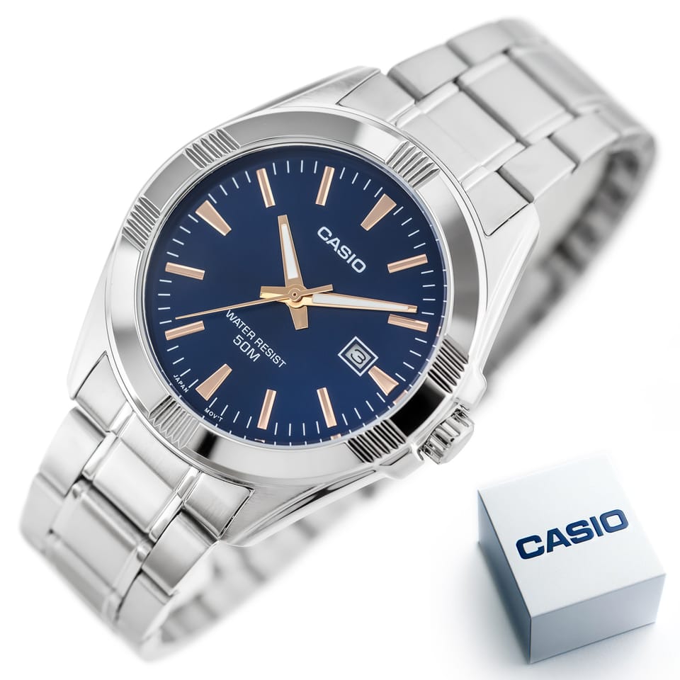 Zegarek męski Casio MTP-1308D-2A to elegancka propozycja dla mężczyzn, którzy cenią sobie ponadczasowy styl oraz niezawodność. Jego klasyczny wygląd, połączony z nowoczesną funkcjonalnością, sprawia, że jest to doskonały wybór zarówno na co dzień, jak i na specjalne okazje. Granatowe, subtelne tło tarczy idealnie kontrastuje z metalowymi indeksami oraz wskazówkami, które zapewniają łatwy odczyt godziny, nawet w mniej sprzyjających warunkach oświetleniowych.