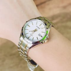 Stalowa bransoleta o eleganckim wykończeniu w srebrno złotym kolorze dodaje całości klasy i wygody, idealnie dopasowując się do nadgarstka. Jego solidne wykonanie zapewnia komfort noszenia przez cały dzień, co sprawia, że zegarek jest idealnym towarzyszem codziennych obowiązków.