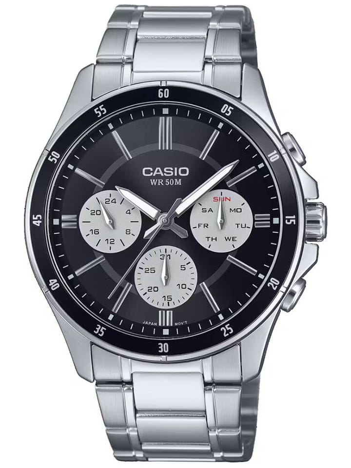 Zegarek męski Casio MTP-1374D-1A3 to połączenie elegancji i funkcjonalności, które zaspokoi potrzeby każdego mężczyzny ceniącego klasyczny design z nowoczesnymi detalami. Posiada srebrną kopertę oraz bransoletę wykonaną z wysokiej jakości stali nierdzewnej, co zapewnia trwałość i komfort noszenia przez długi czas.