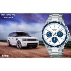Zegarek męski Casio MTP-1374D-7A2 to połączenie elegancji i funkcjonalności, które zaspokoi potrzeby każdego mężczyzny ceniącego klasyczny design z nowoczesnymi detalami. Posiada srebrną kopertę oraz bransoletę wykonaną z wysokiej jakości stali nierdzewnej, co zapewnia trwałość i komfort noszenia przez długi czas.